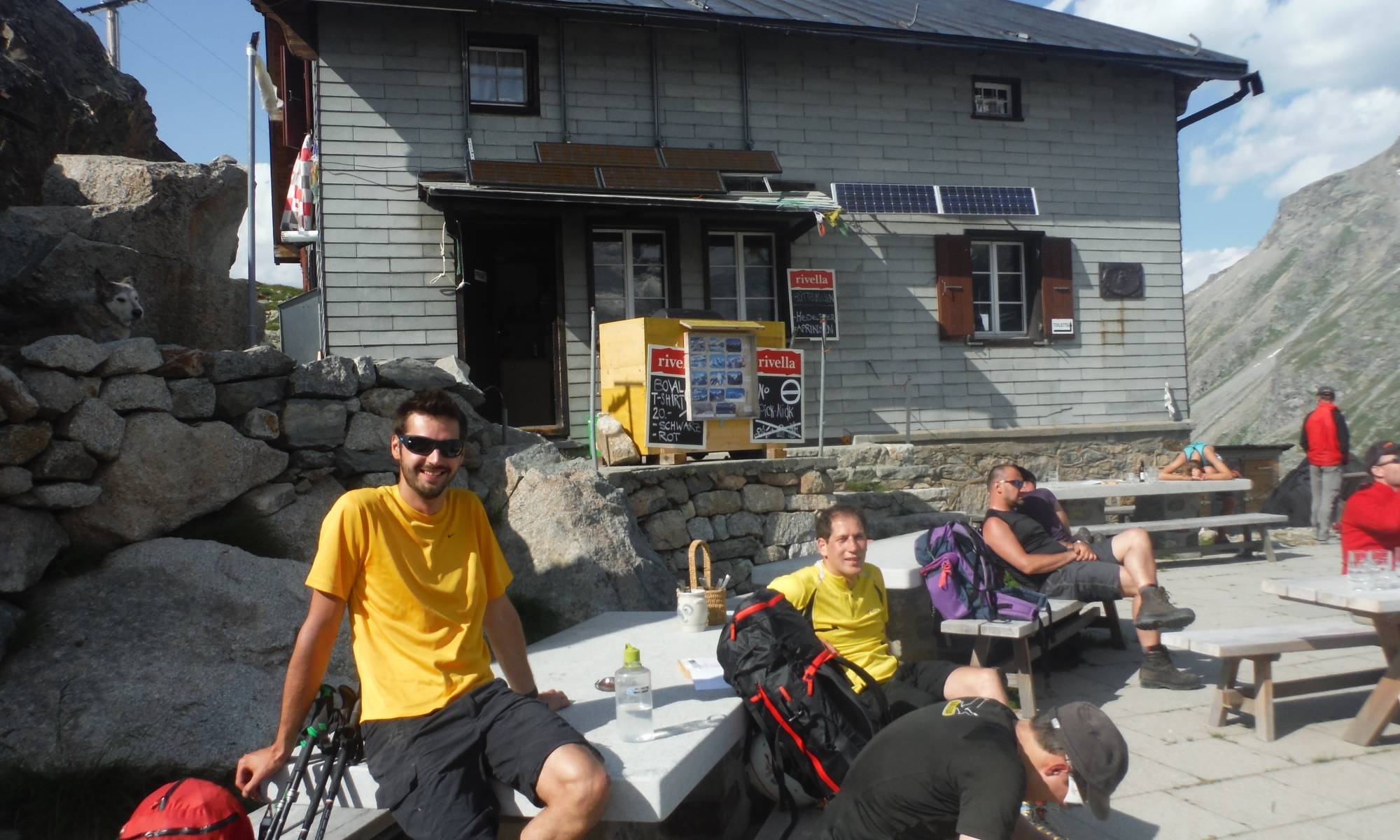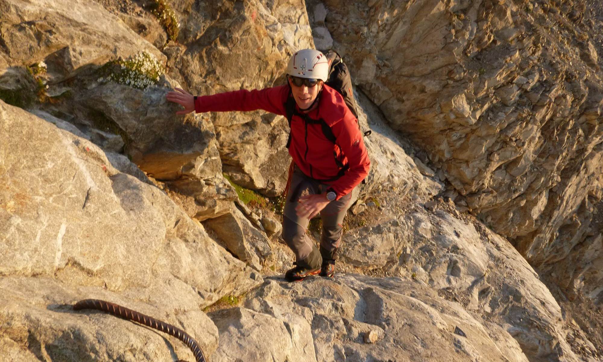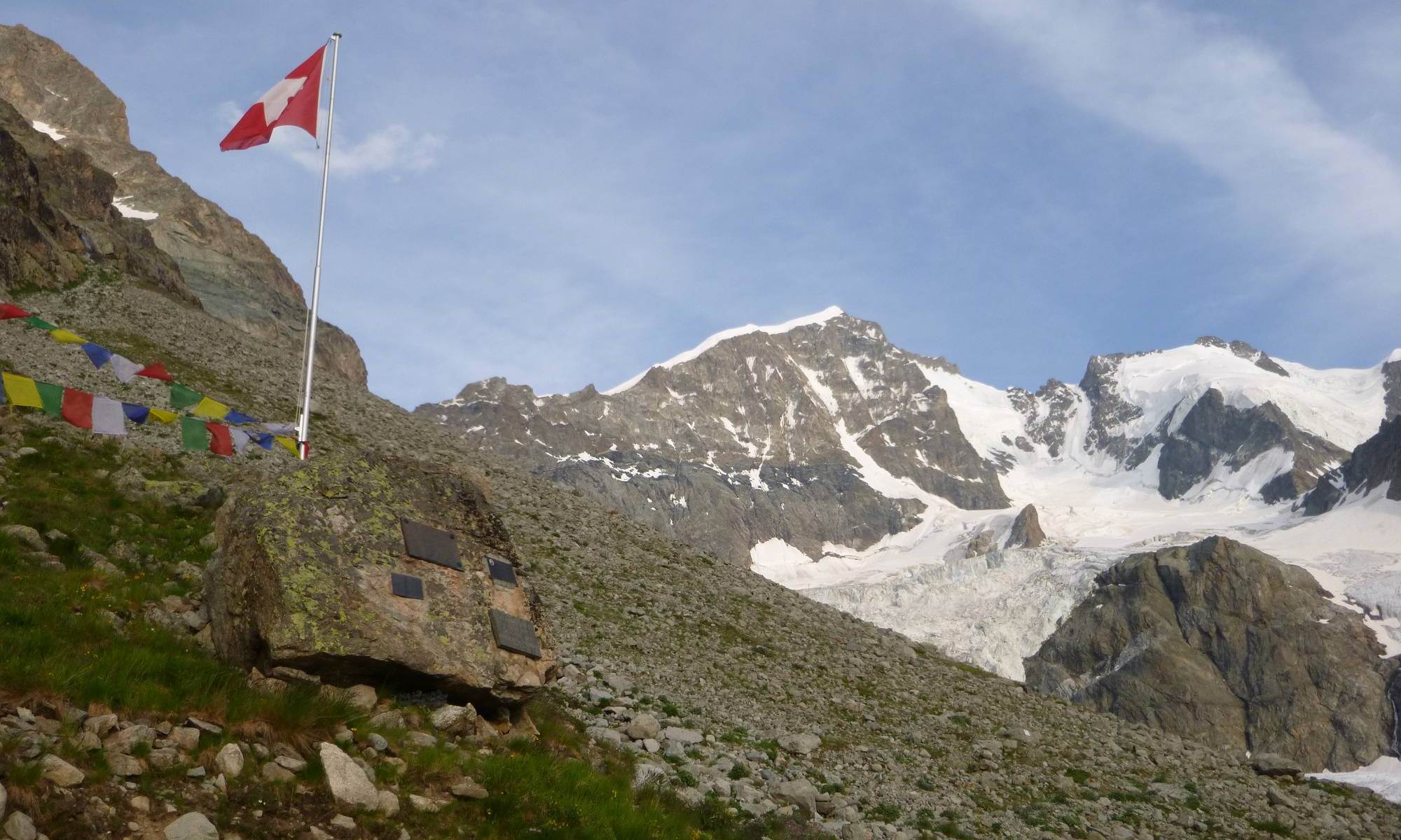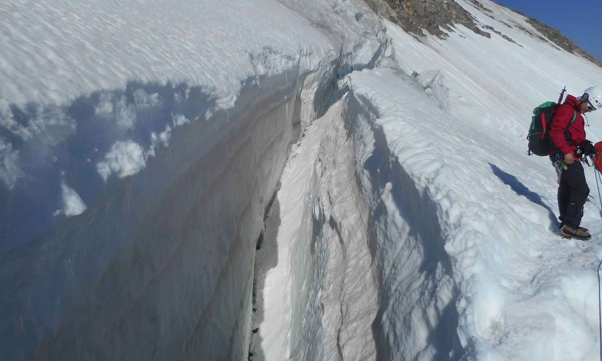 Der Abstieg erfolgte über den Spallagrat mit mehreren Abseilstellen hinunter zur Marco e Rosa Hütte auf 3597m - Wegstrecke 7,5km, jedoch 620Hm Gratanstieg!